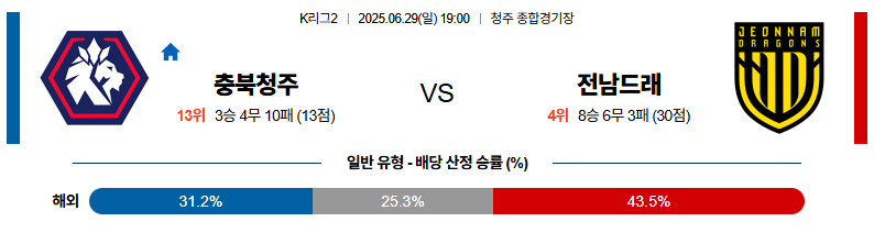 충북청주 대 전남 K리그2 06월29일 맞대결 생중계, 스포츠중계, 스포츠분석