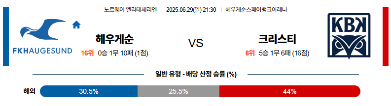 하우게순 대 크리스티안순 노르웨이1부 06월29일 맞대결 생중계, 스포츠중계, 스포츠분석