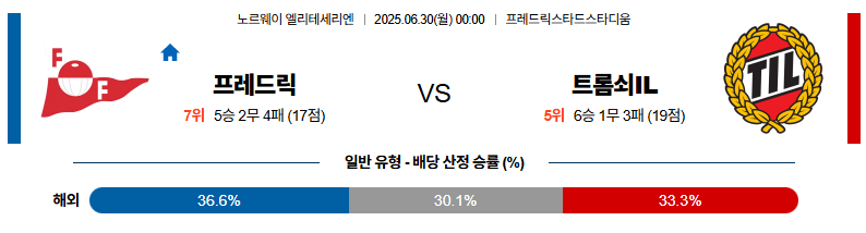 프레드릭스타드 대 트롬쇠 노르웨이1부 06월30일 맞대결 생중계, 스포츠중계, 스포츠분석
