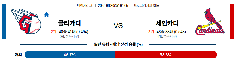 클리블랜드 대 세인트루이스 MLB 06월30일 맞대결 생중계, 스포츠중계, 스포츠분석