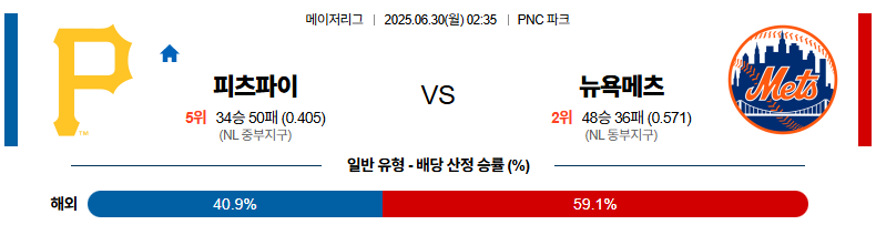 피츠버그 대 뉴욕메츠 MLB 06월30일 맞대결 생중계, 스포츠중계, 스포츠분석