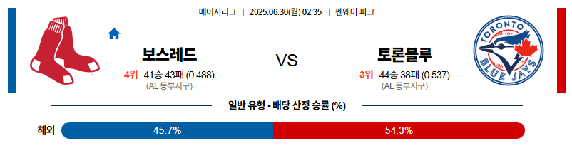 보스턴 대 토론토 MLB 06월30일 맞대결 생중계, 스포츠중계, 스포츠분석