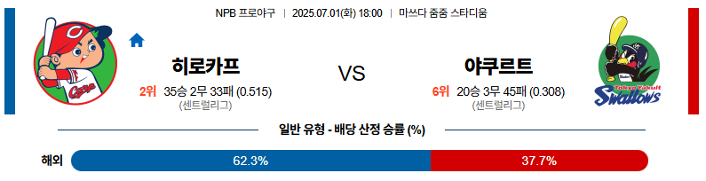 히로시마 대 야쿠르트 N07월01일NPB 07월01일 맞대결 생중계, 스포츠중계, 스포츠분석
