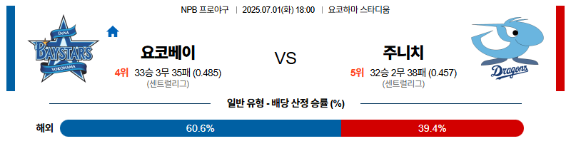 요코하마 대 주니치 NPB 07월01일 맞대결 생중계, 스포츠중계, 스포츠분석