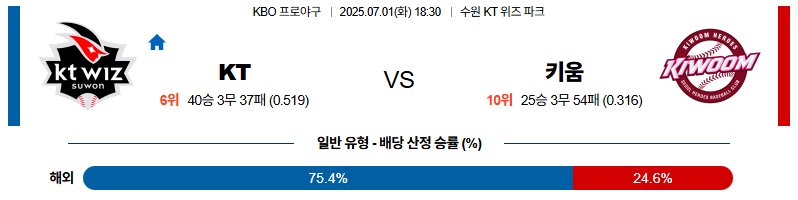 KT 대 키움 KBO 07월01일 맞대결 생중계, 스포츠중계, 스포츠분석