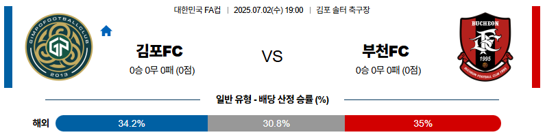 김포 대 부천 대한민국FA컵 07월02일 맞대결 생중계, 스포츠중계, 스포츠분석