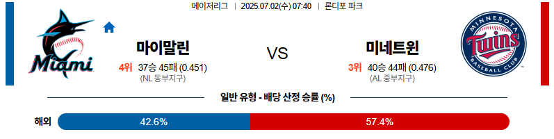 마이애미 대 미네소타 MLB 07월02일 맞대결 생중계, 스포츠중계, 스포츠분석