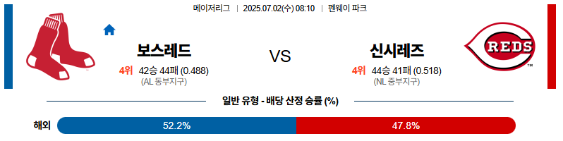 보스턴 대 신시내티 MLB 07월02일 맞대결 생중계, 스포츠중계, 스포츠분석
