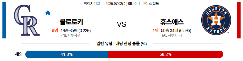 콜로라도 대 휴스턴 MLB 07월02일 맞대결 생중계, 스포츠중계, 스포츠분석