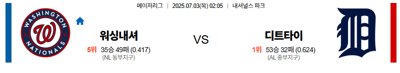 워싱턴 대 디트로이트 MLB 07월03일 맞대결 생중계, 스포츠중계, 스포츠분석
