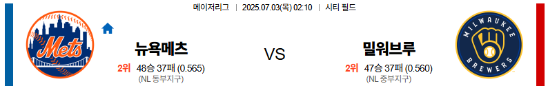 뉴욕메츠 대 밀워키 MLB 07월03일 맞대결 생중계, 스포츠중계, 스포츠분석