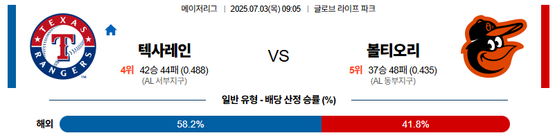 텍사스 대 볼티모어 MLB 07월03일 맞대결 생중계, 스포츠중계, 스포츠분석