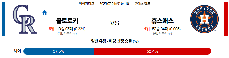 콜로라도 대 휴스턴 MLB 07월04일 맞대결 생중계, 스포츠중계, 스포츠분석