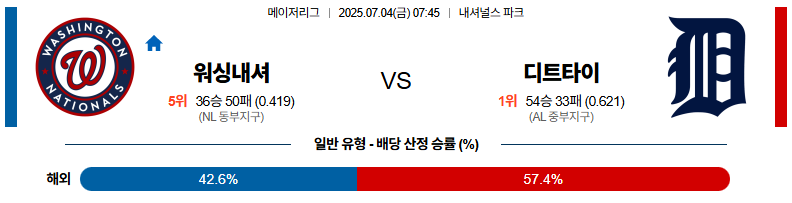 워싱턴 대 디트로이트 MLB 07월04일 맞대결 생중계, 스포츠중계, 스포츠분석