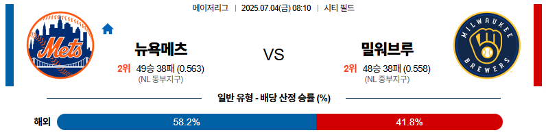 뉴욕메츠 대 밀워키 MLB 07월04일 맞대결 생중계, 스포츠중계, 스포츠분석