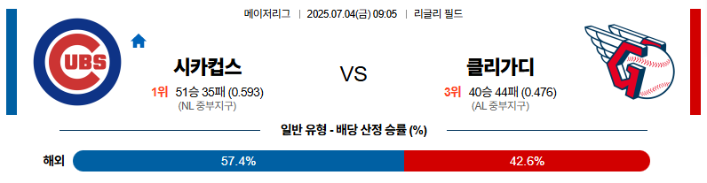시카고컵스 대 클리블랜드 MLB 07월04일 맞대결 생중계, 스포츠중계, 스포츠분석