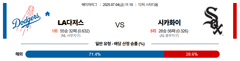 LA다저스 대 시카고W MLB 07월04일 맞대결 생중계, 스포츠중계, 스포츠분석