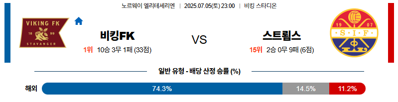 바이킹 대 스트룀스고세 노르웨이1부 07월05일 맞대결 생중계, 스포츠중계, 스포츠분석