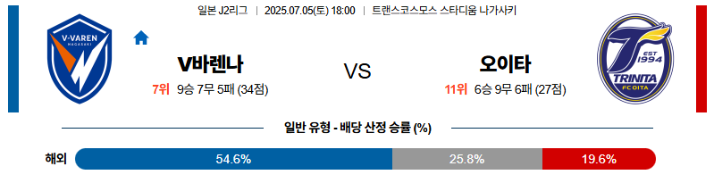 나가사키 대 오이타 J리그2 07월05일 맞대결 생중계, 스포츠중계, 스포츠분석