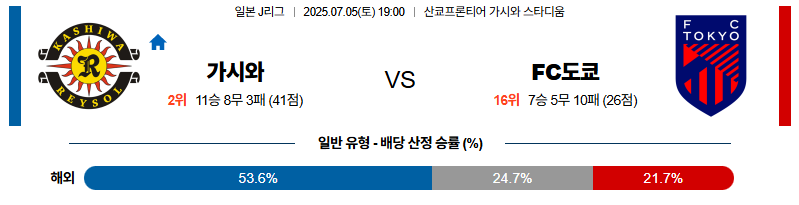 가시와레이솔 대 FC도쿄 J리그1 07월05일 맞대결 생중계, 스포츠중계, 스포츠분석