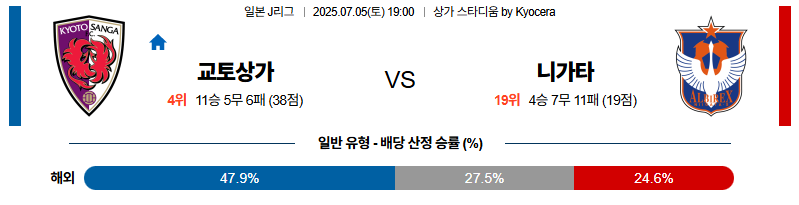 교토퍼플상가 대 니가타 J리그1 07월05일 맞대결 생중계, 스포츠중계, 스포츠분석