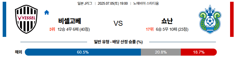 비셀고베 대 쇼난 J리그1 07월05일 맞대결 생중계, 스포츠중계, 스포츠분석