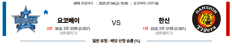 요코하마 대 한신 NPB 07월04일 맞대결 생중계, 스포츠중계, 스포츠분석