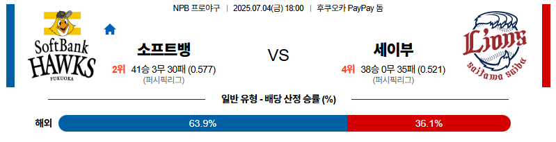 소프트뱅크 대 세이부 NPB 07월04일 맞대결 생중계, 스포츠중계, 스포츠분석