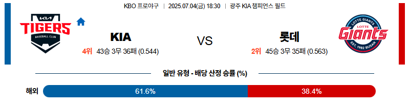 KIA 대 롯데 KBO 07월04일 맞대결 생중계, 스포츠중계, 스포츠분석