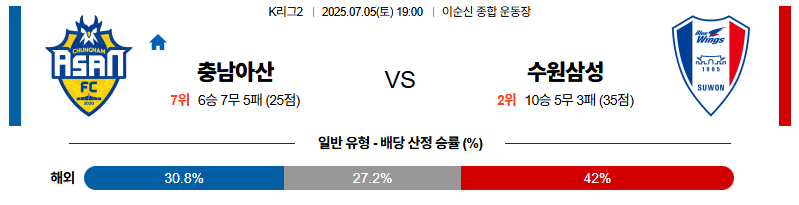 충남아산 대 수원삼성 K리그2 07월05일 맞대결 생중계, 스포츠중계, 스포츠분석