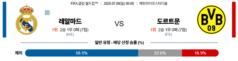 레알마드리드 대 도르트문트 FIFA클럽월드컵 07월06일 맞대결 생중계, 스포츠중계, 스포츠분석