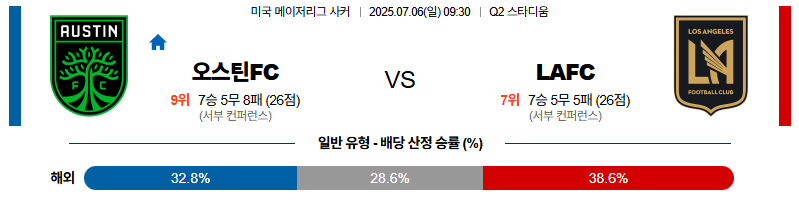 오스틴 대 LAFC 메이저리그사커 07월06일 맞대결 생중계, 스포츠중계, 스포츠분석