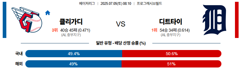 클리블랜드 대 디트로이트 MLB 07월05일 맞대결 생중계, 스포츠중계, 스포츠분석