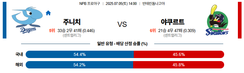 주니치 대 야쿠르트 NPB 07월05일 맞대결 생중계, 스포츠중계, 스포츠분석