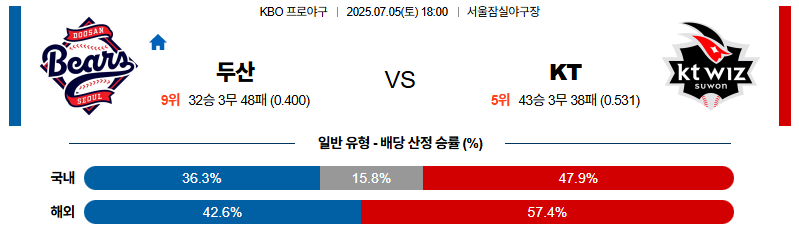 두산 대 KT KBO 07월05일 맞대결 생중계, 스포츠중계, 스포츠분석