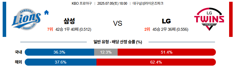 삼성 대 LG KBO 07월05일 맞대결 생중계, 스포츠중계, 스포츠분석