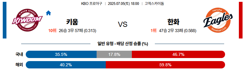 키움 대 한화 KBO 07월05일 맞대결 생중계, 스포츠중계, 스포츠분석
