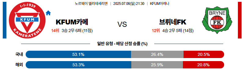 KFUM오슬로 대 브뤼네 노르웨이1부 07월06일 맞대결 생중계, 스포츠중계, 스포츠분석