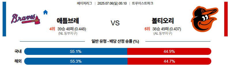 애틀랜타 대 볼티모어 MLB 07월06일 맞대결 생중계, 스포츠중계, 스포츠분석