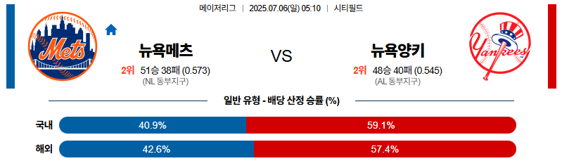 뉴욕메츠 대 뉴욕양키스 MLB 07월06일 맞대결 생중계, 스포츠중계, 스포츠분석