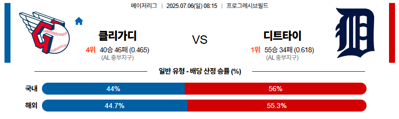 클리블랜드 대 디트로이트 MLB 07월06일 맞대결 생중계, 스포츠중계, 스포츠분석