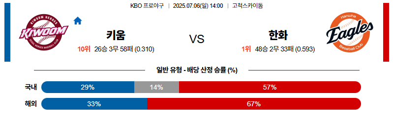 키움 대 한화 KBO 07월06일 맞대결 생중계, 스포츠중계, 스포츠분석