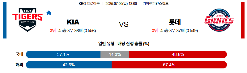 KIA 대 롯데 KBO 07월06일 맞대결 생중계, 스포츠중계, 스포츠분석
