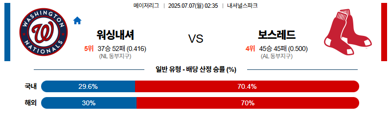워싱턴 대 보스턴 MLB 07월07일 맞대결 생중계, 스포츠중계, 스포츠분석