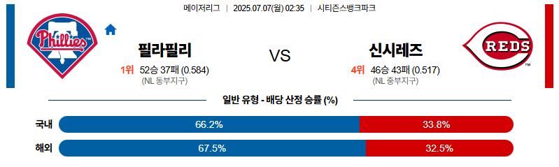 필라델피아 대 신시내티 MLB 07월07일 맞대결 생중계, 스포츠중계, 스포츠분석
