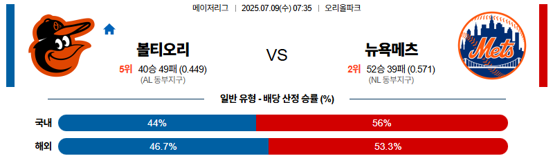 볼티모어 대 뉴욕메츠 MLB 07월09일 맞대결 생중계, 스포츠중계, 스포츠분석