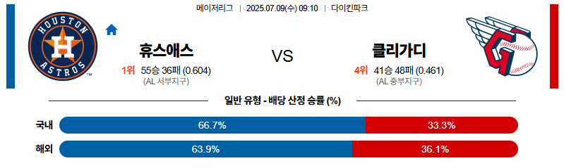 휴스턴 대 클리블랜드 MLB 07월09일 맞대결 생중계, 스포츠중계, 스포츠분석