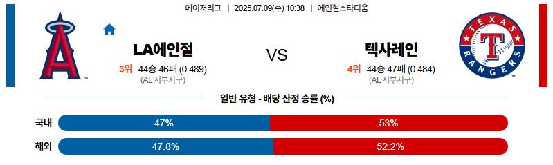 LA에인절스 대 텍사스 MLB 07월09일 맞대결 생중계, 스포츠중계, 스포츠분석