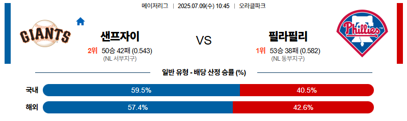 샌프란시스코 대 필라델피아 MLB 07월09일 맞대결 생중계, 스포츠중계, 스포츠분석