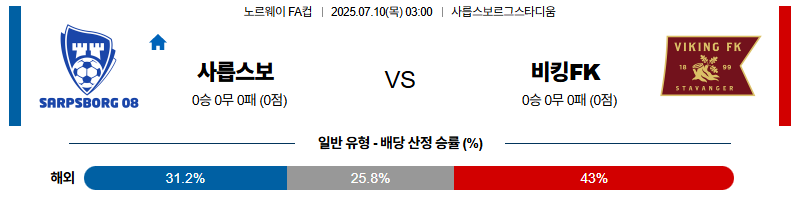 사릅스보르그 대 바이킹 노르웨이FA컵 07월10일 맞대결 생중계, 스포츠중계, 스포츠분석